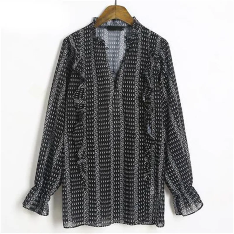Женская повседневная черная Свободная рубашка в стиле бохо с длинным рукавом, топы для женщин на лето и осень, большие размеры, блузки с v-образным вырезом, мешковатые винтажные блузки S-3XL!