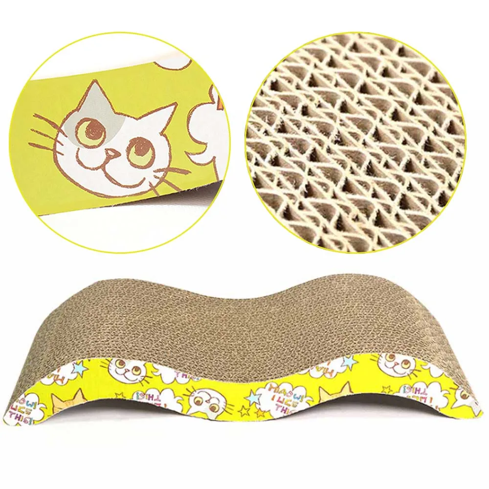 Он может привлечь вашу кошку, чтобы играть в нее Изготовлен из гофрокартона, не беспокойтесь о том, чтобы повредить пальцы кошки, кошка не проглотит его, и это облегчает дефекацию кошки Светильник с волнистым дизайном, прочный и приносит больше удовольствия вашей кошке Защитите мебель от царапин Удовлетворите естественные царапины вашей кошки