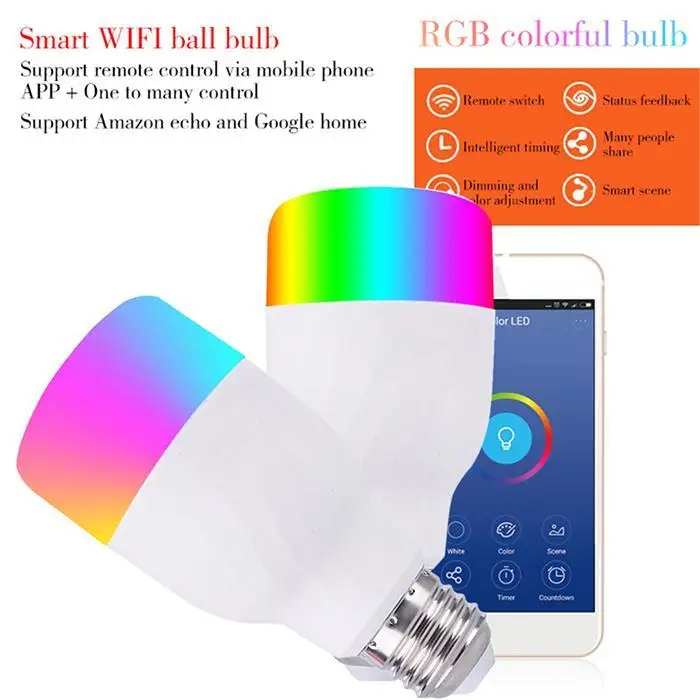 Материал: алюминий + пластик Цвет: серебристый Мощность: 12 Вт 3 типа: E26 световая головка, E27 световая головка, B22 световая головка Рабочее напряжение: AC85-265V Беспроводной Тип: Wi-Fi 2,4 ГГц Размеры: 60x115 мм/2,4x4,5 дюймов Количество: 1 шт. Особенности: Вы можете настроить свой любимый цвет через приложение телефона. Он имеет функцию синхронизации и задержки. Поддерживает Echo Alexa и Google home. Простое управление Wi-Fi, работает на любом iOS или Android. Широко используется в домашнем хозяйстве, торговых центрах, гостиницах, офисах. Столовой, магазине и других помещениях, домашнем развлекательном вечеринке. Содержимое упаковки: 1 Умная лампочка Wifi Примечание: Из-за разницы между различными мониторами изображение может не отражать фактический цвет изделия.