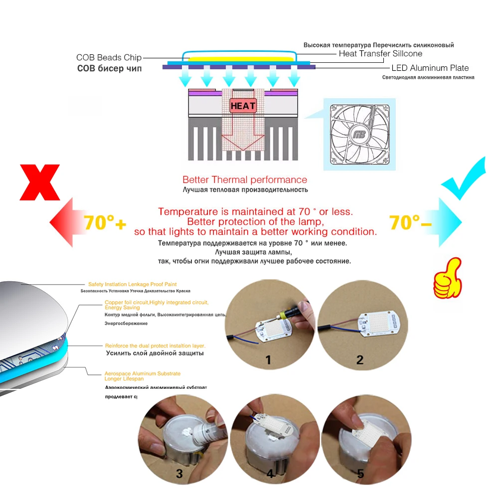 Интегрированная световая доска Wroking< 50 градусов Цельсия Интегрированная световая панель <10 часов в день Задняя панель должна быть покрыта термопастой Плата должна быть в тесном контакте с теплоотводом Пожалуйста, свяжитесь с нами по любым вопросам