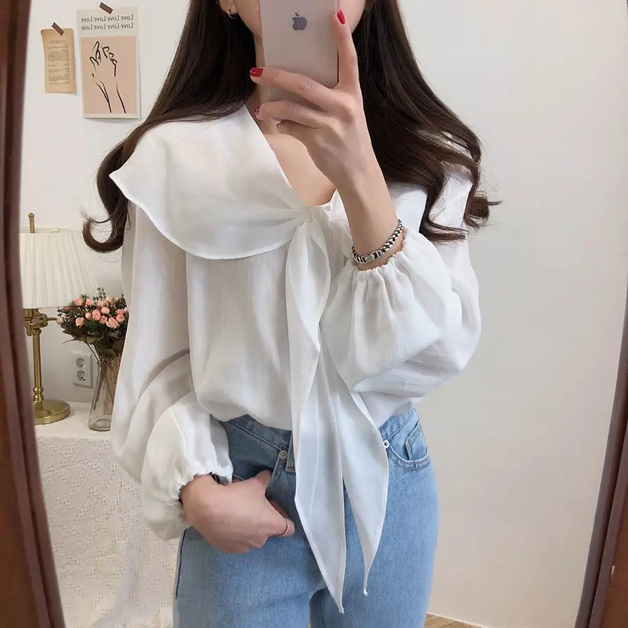 Галстук-бабочка, платья для женщин, с бантиком, японский, корейский дизайн, Топ в стиле "преппи" Милое красный, белый винтажная блузка рубашка blusa de verano