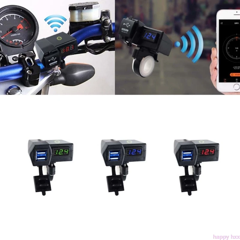 1 X Зарядное устройство для телефона мотоцикла с 2 портами USB и светодиодный вольтметр (без розничной упаковки)