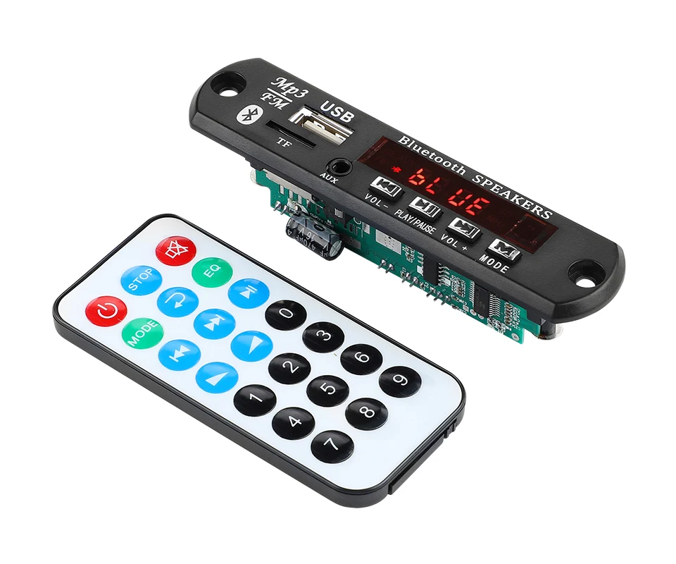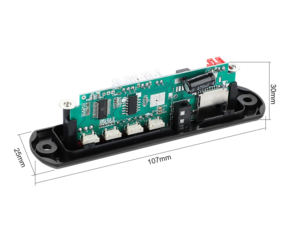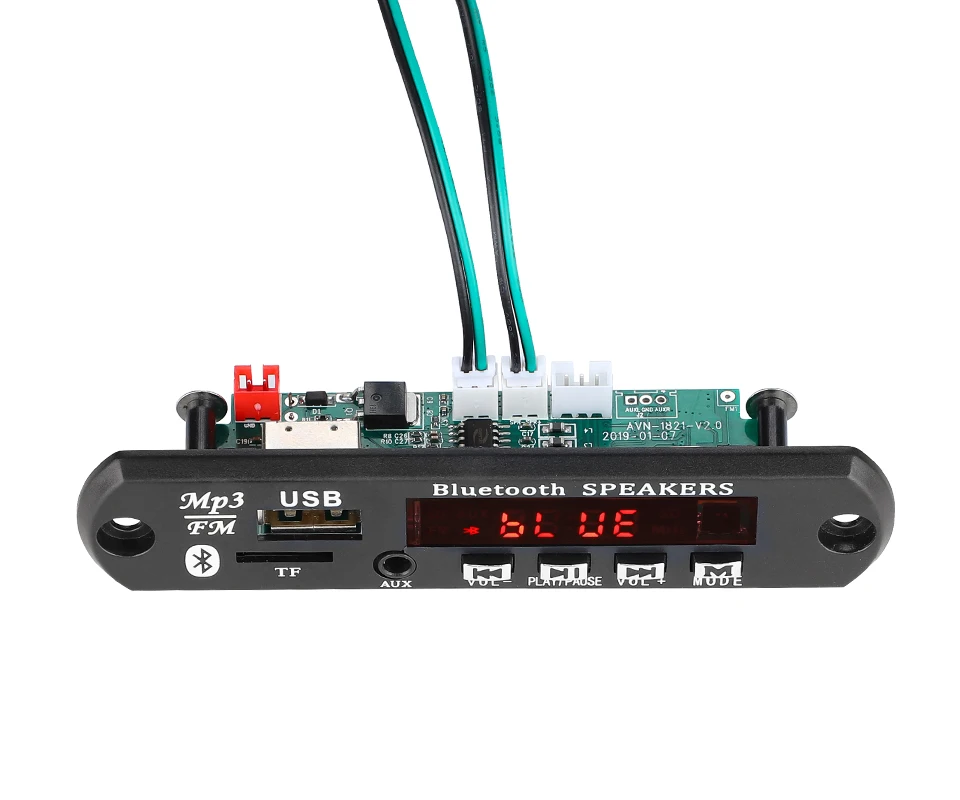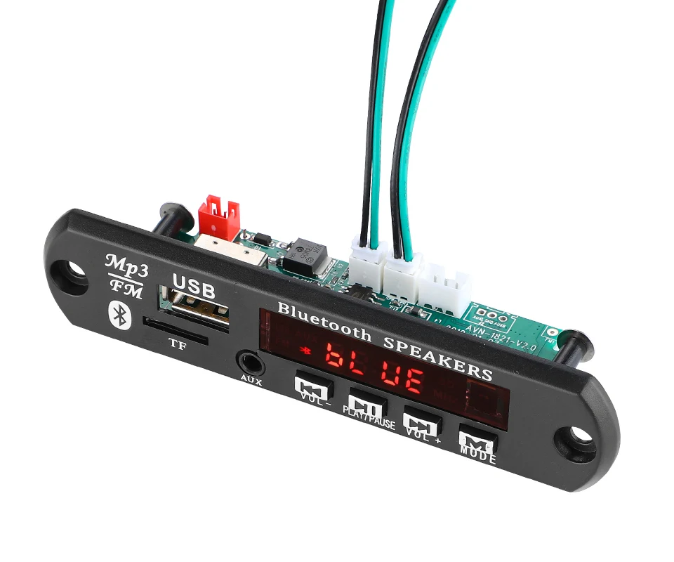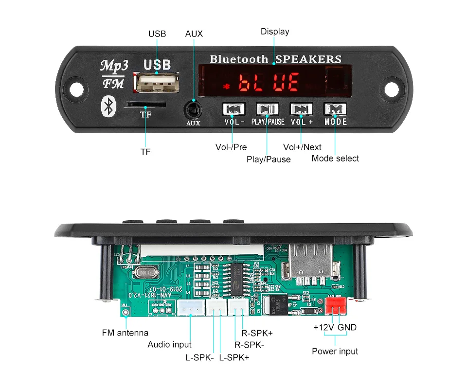 Рабочий ток: ≥ 3,5a;Выходная мощность: 15 Вт * 2 (с функцией усилителя)Особенности:1. ПоддержкаU-диск и tf-картаВоспроизведение, поддержка нескольких видов декодирования формата (MP3/WAV/APE/FLAC), MP3: частота дискретизации/8 ~ 48K. Скорость кода/8 ~ 448 кбит/с, ширина бит/16 бит, канал/одноканальный-стерео; WAV: частота образцов/8 ~ 48 к, формат/WAV ima / Microsoft ADPCM / WAV PCM, Ширина Бит/16 бит; FLAC: частота дискретизации/8 ~ 48K, ширина бит/16 бит; APE: быстрое/нормальное кодирование, ширина бит/16 бит.2. Поддерживает вспомогательный вход сигнала (AUX) и регулирует громкость3. ПоддержкаFm-радио (FM)4. Поддержка цифрового дисплея трубки рабочее состояние и время воспроизведения5. Поддержка функции чтения карт6. Поддержка функции звуковой карты USB7. Поддержка инфракрасного пульта дистанционного управления8. Bluetooth основан на уровне мощности класса 2,Версия Bluetooth 5,0, совместима с Bluetooth 4,0 и ниже.9. Bluetooth поддерживает протокол L2CAP/A2DP (AVCTP/AVDTP/AVRCP) для приема стереозвуков и может управлять потоком и воспроизведением/пауза аудиопередатчика через протокол.10. Используйте отлаженную антенну PCB без повторного соответствия антенны11. Цифровой аудио усилитель класса DОсновной объем загрузки по умолчанию последний объем выключения, устройство не является статусом Bluetooth, есть устройство (USB/SD также имеет USB по умолчанию) для воспроизведения содержимого устройства, USB/SD поддерживает приоритет пост-вилки, трек памяти/радио/громкостьВыходная мощность: 15 Вт * 2, динамик рекомендуется: 4Ω 20 Вт * 2Этот продукт не подходит для автомобилей. Источник питания 12 В на автомобилях на самом деле больше 12 В, который будет сжигать продуктПримечание:1. Некоторые мобильные телефоны не поддерживают функции «выцветания» и «выцветания», поэтому во время воспроизведения будут звучать всплывающие звуки, переключение музыки вверх и вниз.2. Обнаружение отключения Bluetooth не является функцией обнаружения в реальном времени, поэтому мобильный телефон отключен после того, как bluetooth-динамик выключен в течение определенного периода времени.3. Некоторые мобильные телефоны нажимают предыдущую песню в режиме воспроизведения 3S, она вернется в исходное положение текущей песни, поэтому ее нужно нажимать дважды, чтобы иметь предыдущую песню.4. Некоторые внутренние мобильные телефоны могут быть сопряжены и не могут быть подключены, потому что программное обеспечение мобильного терминала должно обнаруживать устройство без рук для подключения.5. Некоторые мобильные телефоны не поддерживают простое сопряжение. Например, мобильный телефон Saipan system, при сопряжении необходимо ввести пароль 0000.Упаковка:Плата декодера MP3-1 шт.1 пульт дистанционного управления