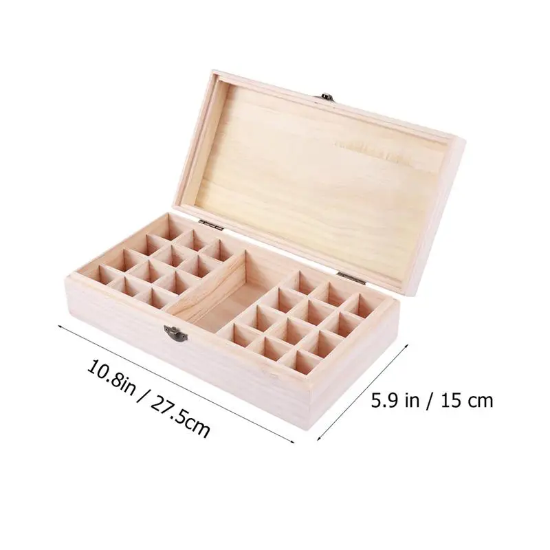 Это ящик для хранения бутылок с эфирным маслом премиум-класса. Изготовленный из высококачественной древесины, он может держать вашу коллекцию эфирных масел в организации. Прочный, но прочный светильник, превосходное мастерство, он надежно хранит и защищает ваши бутылки с эфирными маслами, лучший выбор для путешествий.