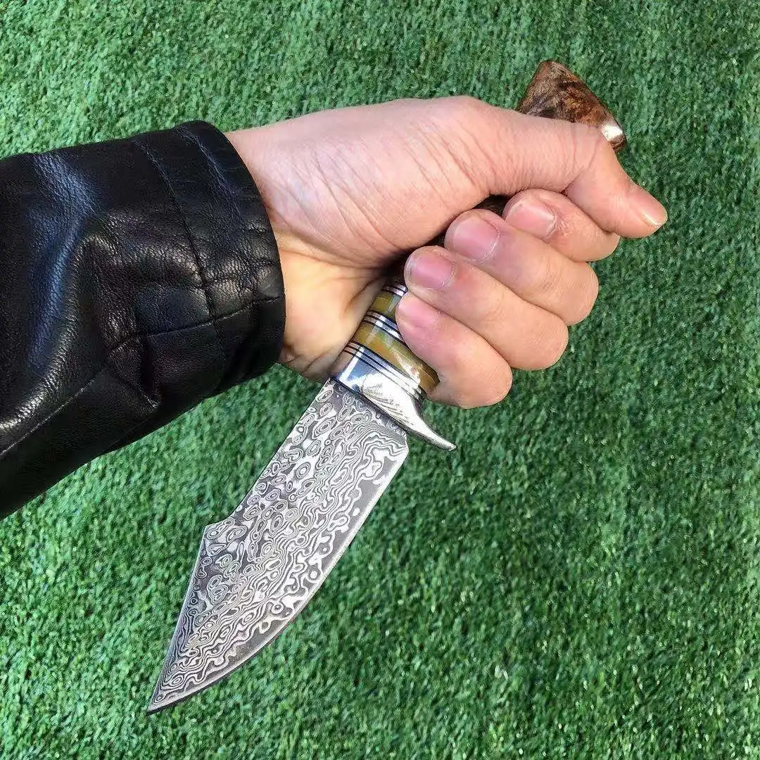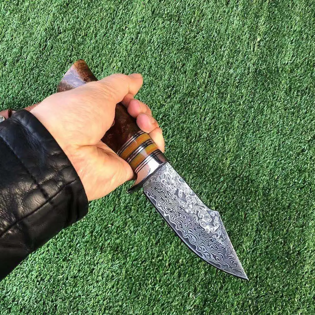 Открытый охотничий нож из высокоуглеродистой стали с Дамасским узором, Прямые ножи для кемпинга, рыбалки, снаряжение для выживания, инструменты, меч