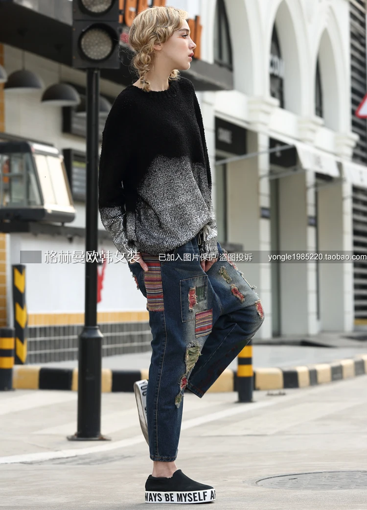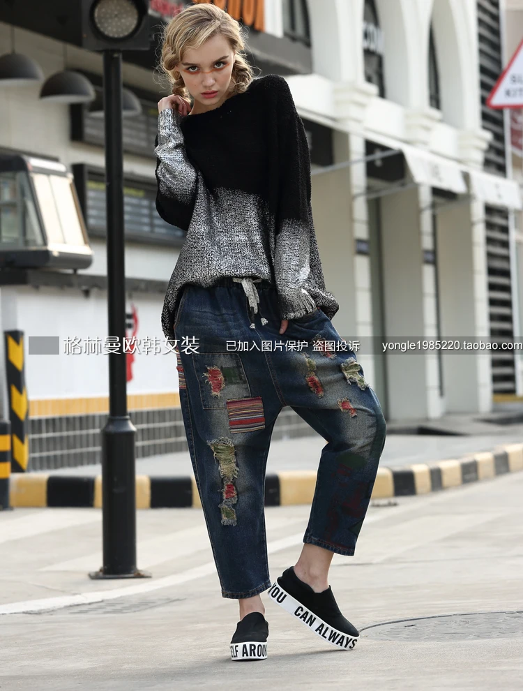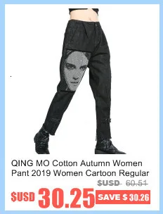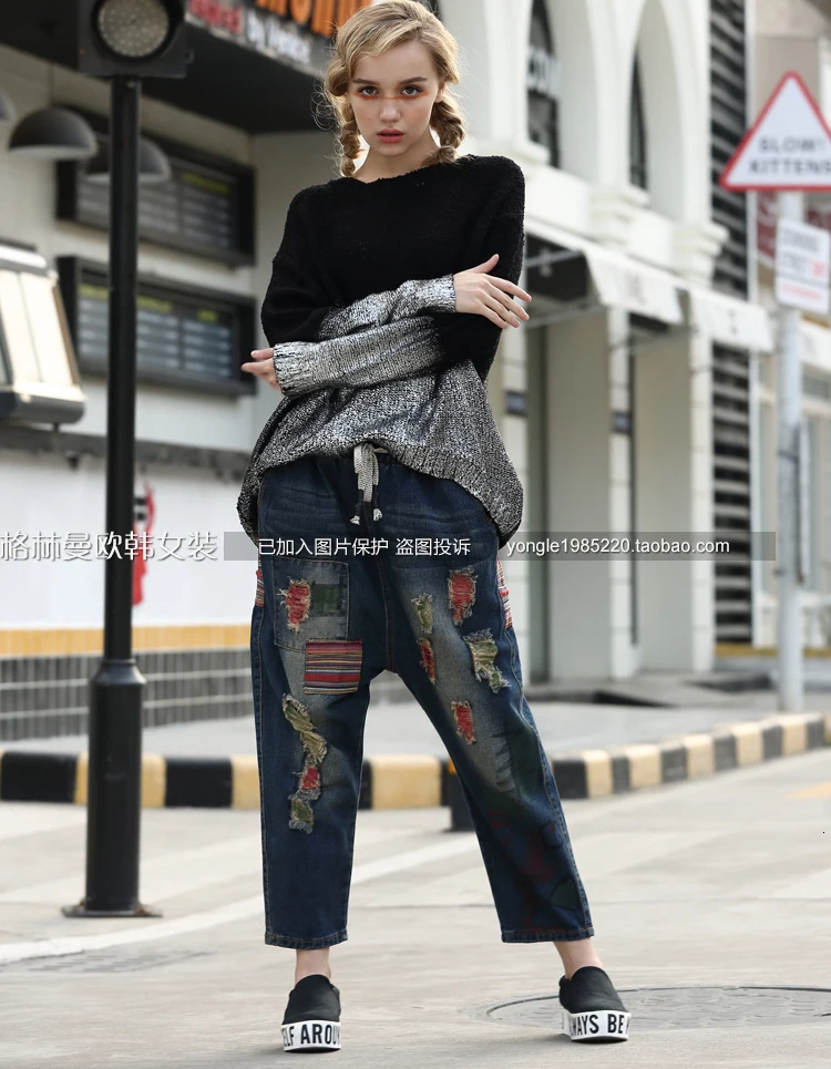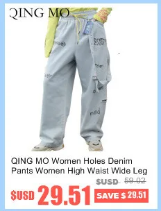 QING MO, женские джинсовые штаны с дырками, синие штаны с эластичным поясом, женские винтажные джинсовые штаны в стиле пэчворк, шаровары с карманами, ZLDM139