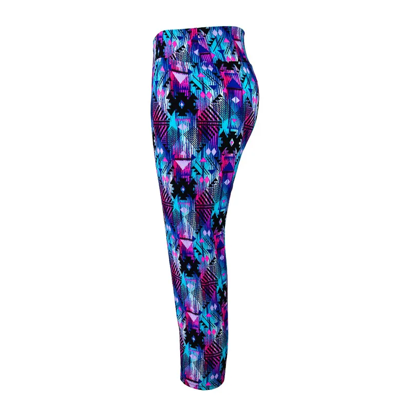 Обрезанные спортивные штаны с высокой талией для фитнеса и йоги, леггинсы стрейч с принтом