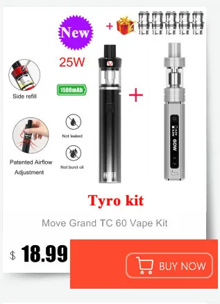 Размер бака Φ 25*54 мм Размер модели Φ 25*88 мм Опорная катушка КТР (0,15/0,25 ± 0.05ohm); Емкость E-liquild 2,0 мл Емкость аккумулятора 3000 мАч (встроенный) Выходная мощность 100 Вт Выходной режим VW Mod