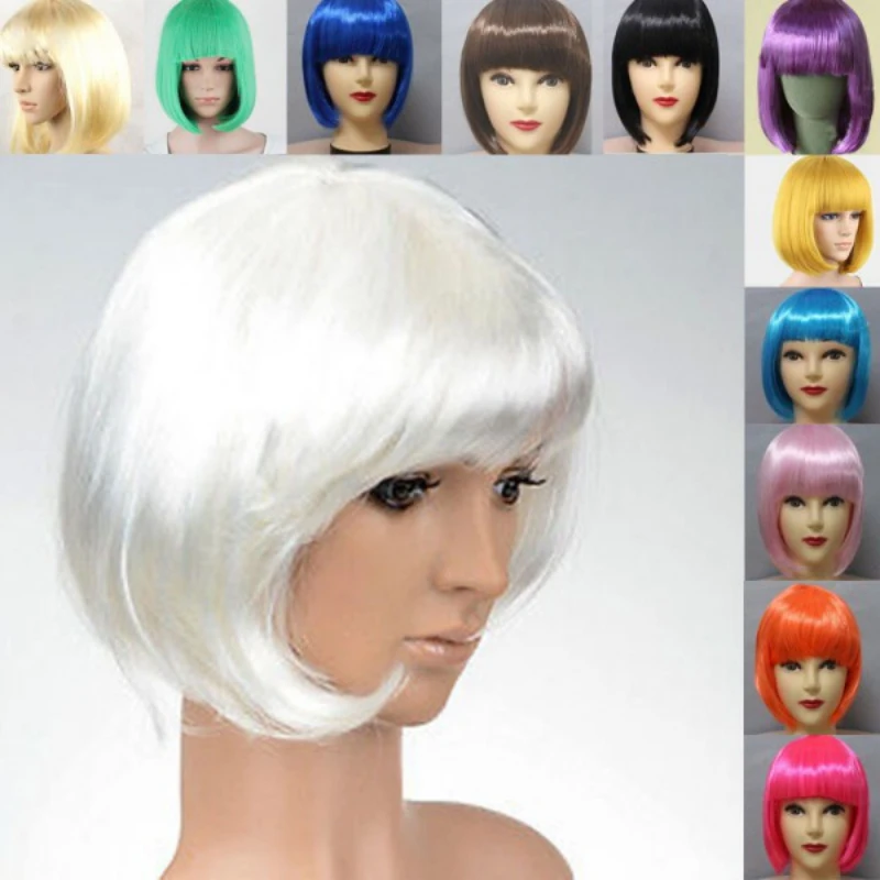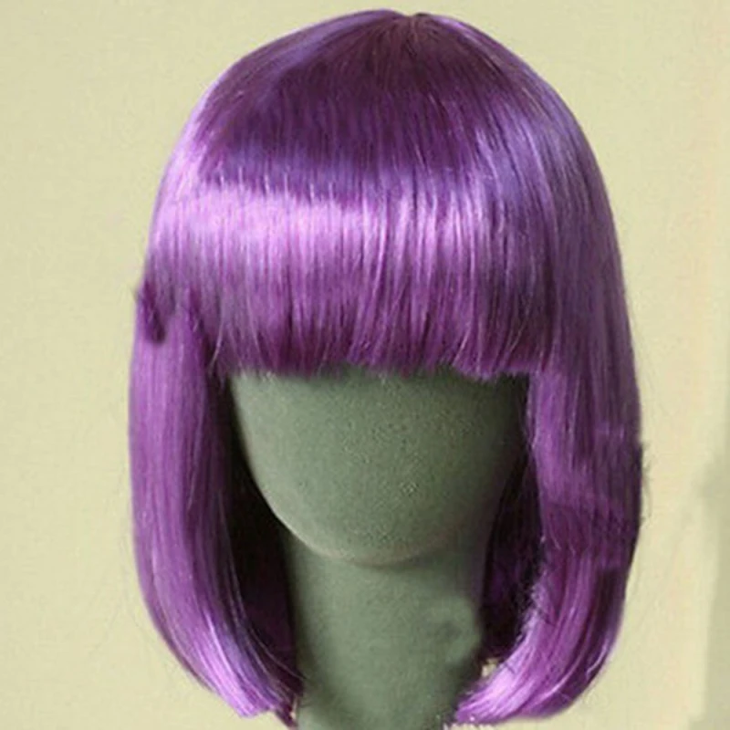 100% Высококачественная Новинка! Длина: короткая Стиль: полный парик Текстура: прямая Материал: синтетический ворс Цвет: темно-синий, красный, белый, зеленый, фиолетовый, оранжевый, желтый, черный, розовый, светильник-голубой, золотой, кофейный, большой красный. В посылка входит: 1 парик bob