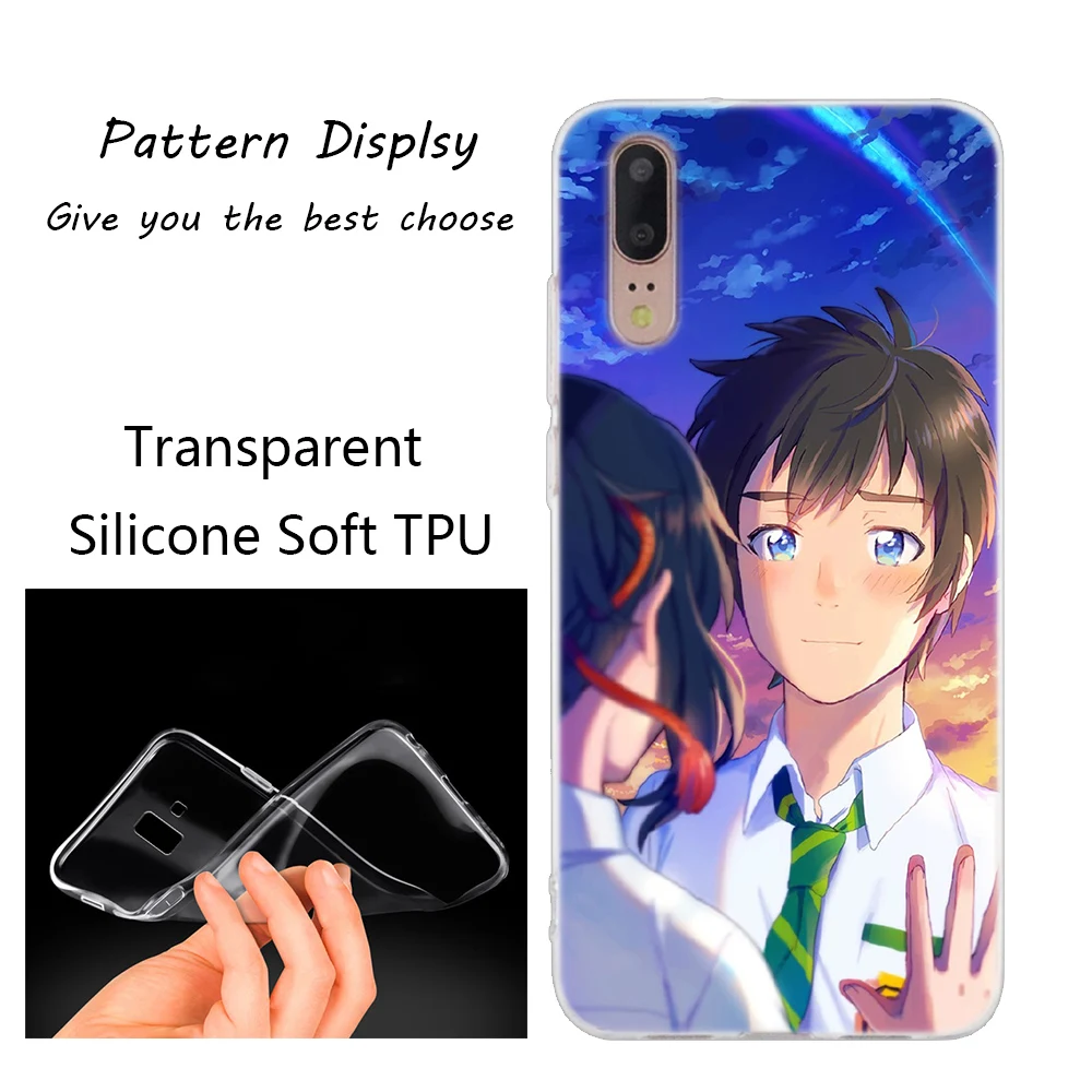 MLLSEАниме ваше имяЛидер продаж; МодныеПрозрачный чехол для телефона из мягкого силикона ТПУ с рисункомЧехлы для Huawei P8 P9 Lite Mini 2017 P10 P20 P30 Lite Pro P Smart 2019 PlusМягкий силиконовый чехолВ чехле!