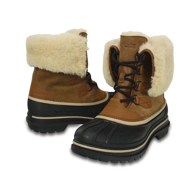 В этих сапогах вам нестрашна самая страшная непогода. Эти сапоги сохранят ваши ноги в тепле и сухости, при этом они очень мало весят. Они не пропускают воду благодаря герметичным швам и глухому клапану, которые не дают влаге и грязи проникнуть внутрь. Верх из натуральной замши и манжета с подкладкой из натуральной овчины придают обуви шикарный вид сапог премиум-класса и отлично защищают от холода. Почувствуйте комфорт на целый день благодаря системе амортизации Dual Crocs Comfort™. Кто сказал, что зима – это плохо?