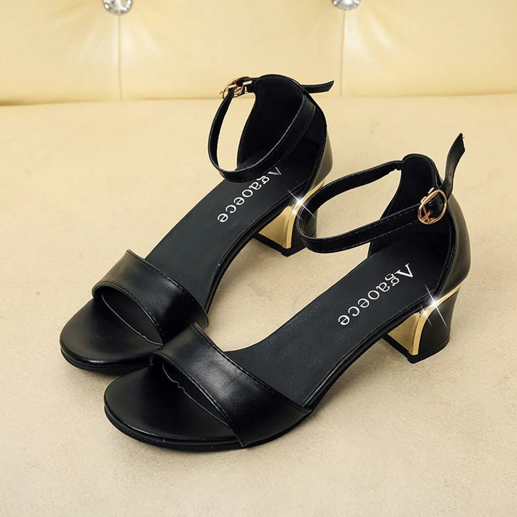 Женские модные повседневные босоножки с круглым носком и пряжкой на ремешке; Обувь на толстом каблуке с открытым носком