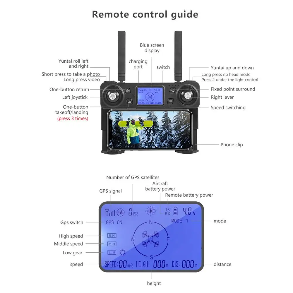 Умные следования, объемный полет, пользовательские Путевые точки, возвращение живого изображения, контроль скорости, GPS оптический поток фиксированной высоты, бесщеточный двигатель, ремейк жестов, 4k HD съемка, HD объектив ESC
