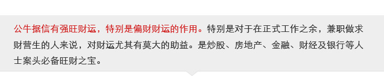 商品说明:名称:生肖牛摆件Цветовая гамма:树脂Цветовая гамма:长 18 厘米 宽 16 厘米 高 30 厘米净重:约 2,6 斤Цветовая гамма:招财-聚财-发财送礼:开业乔迁 、 生日礼物 、 家居装饰...Цветовая гамма:客厅 、 办公室 、 前台房...包装:原配包装盒商品特点:公牛据信有强旺财运,特别是偏财财运的作用 。 待别是对于在正式工作之余,兼职做求财营生的人来说,其于财运尤其的助益 。 系 炒股 、 房地产 、 金融财经及银行等人士案头旺财之物