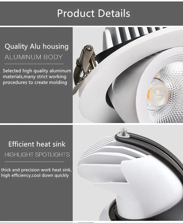 Спецификация: Входное напряжение: AC85V-265V Материал корпуса: алюминиевый сплав Цвет корпуса: белый Потребляемая мощность: 5 Вт Источник светодиодов: COB Цвет: чистый белый (цветовая температура 6000-6500 K)/теплый белый (2700-3500 K)/натуральный белый (цветовая температура 4000 K)/три цвета Люмен: 500-600 люмен Угол луча: 30 ° Лампа может регулироваться: угол поворота 360 °; регулируемый угол 70 ° Гарантия безопасности: CE & RoHS Размеры: 90 мм (диаметр) x 80 мм (размер отверстия) x 75 мм (высота) Каждый светодиодный потолочный светильник поставляется с светодиодным Драйвером Преимущество: Длительный срок службы, мгновенный запуск, не мигает Твердотельный, ударопрочный, без радиочастотных помех Экономьте мощность более 90% обычных ламп, низкая стоимость обслуживания Долгое время работы, 12 часов в день идеально, производят низкое тепло Без ртути или других опасных материалов, соответствует RoHs Рабочая среда-20 ℃-65 ℃, подходит для необычного климата В комплект входит: 10 шт. x 5 Вт LED COB потолочный прожектор со светодиодным Драйвером