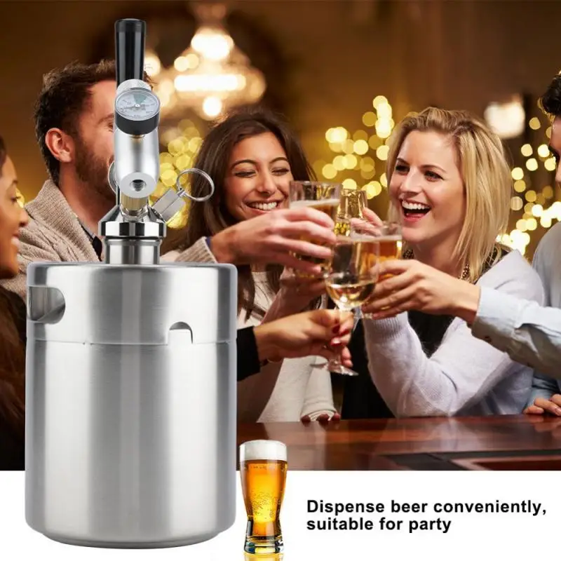 Этот мини-пивной бочонок идеально подходит для хранения крафтового пива или домашнего пивоварения. Он изготовлен из прочной и безопасной нержавеющей стали. Это устройство помогает сохранить газированное пиво и сохранить его оригинальный вкус и аромат. Идеально решить проблему, что пиво идет плоским после первой заливки.