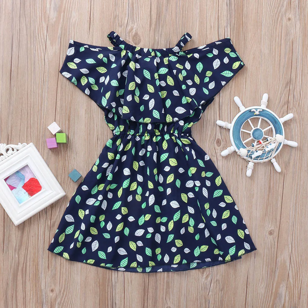 Для детей Платье для маленьких девочек; Шифоновые Платья с цветочным принтом и росой на плечах; одежда