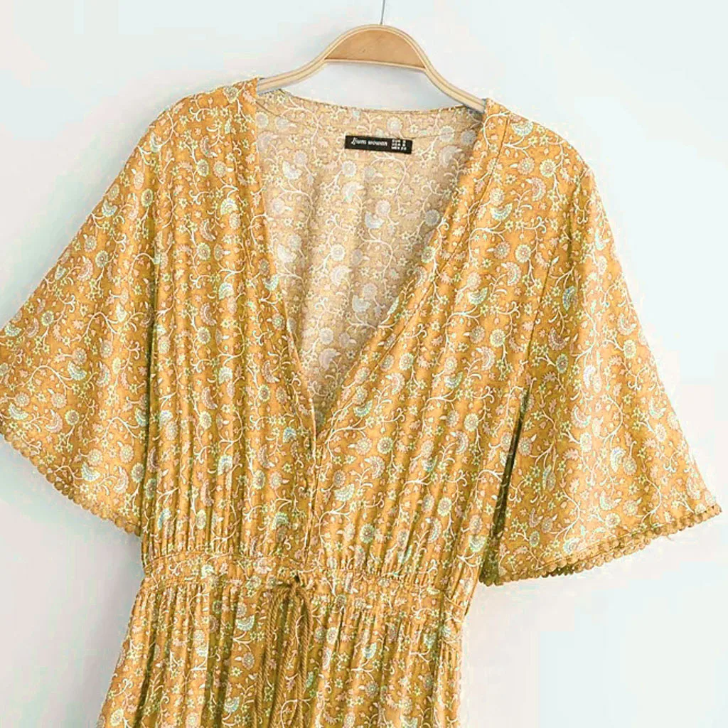 Модное женское Платье макси с глубоким v-образным вырезом и коротким рукавом с кисточками