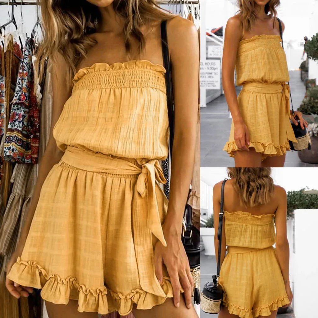 Женский цветок Комбинезон средней длины с цветочным принтом и короткими рукавами