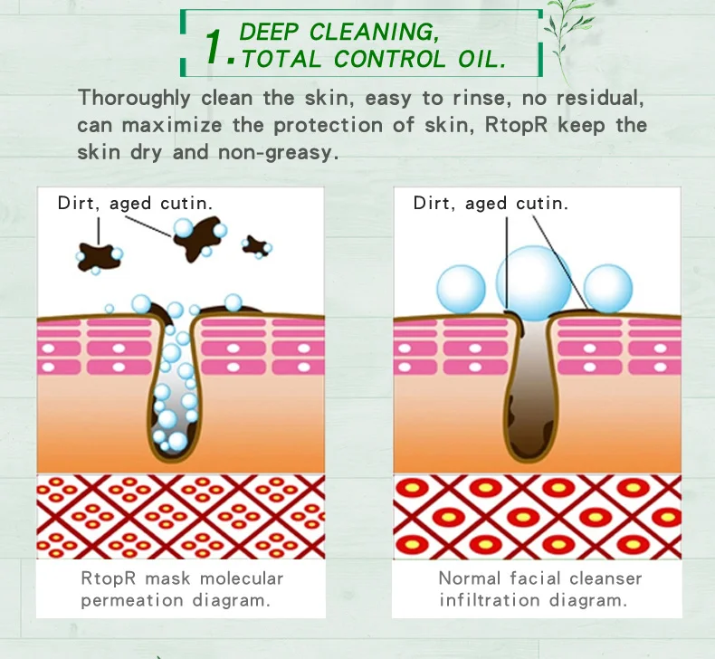 Продукт может глубоко проникать в поры, смягчить кутин кожи, может адсорбировать угри, принимать угри и скрывать грязь из пор, очищать и увлажнять кожу, удалять черные головы, питая кожу, сближение пор, облегчение сухости и огрубевшей кожи, делает кожу нежной и гладкой.