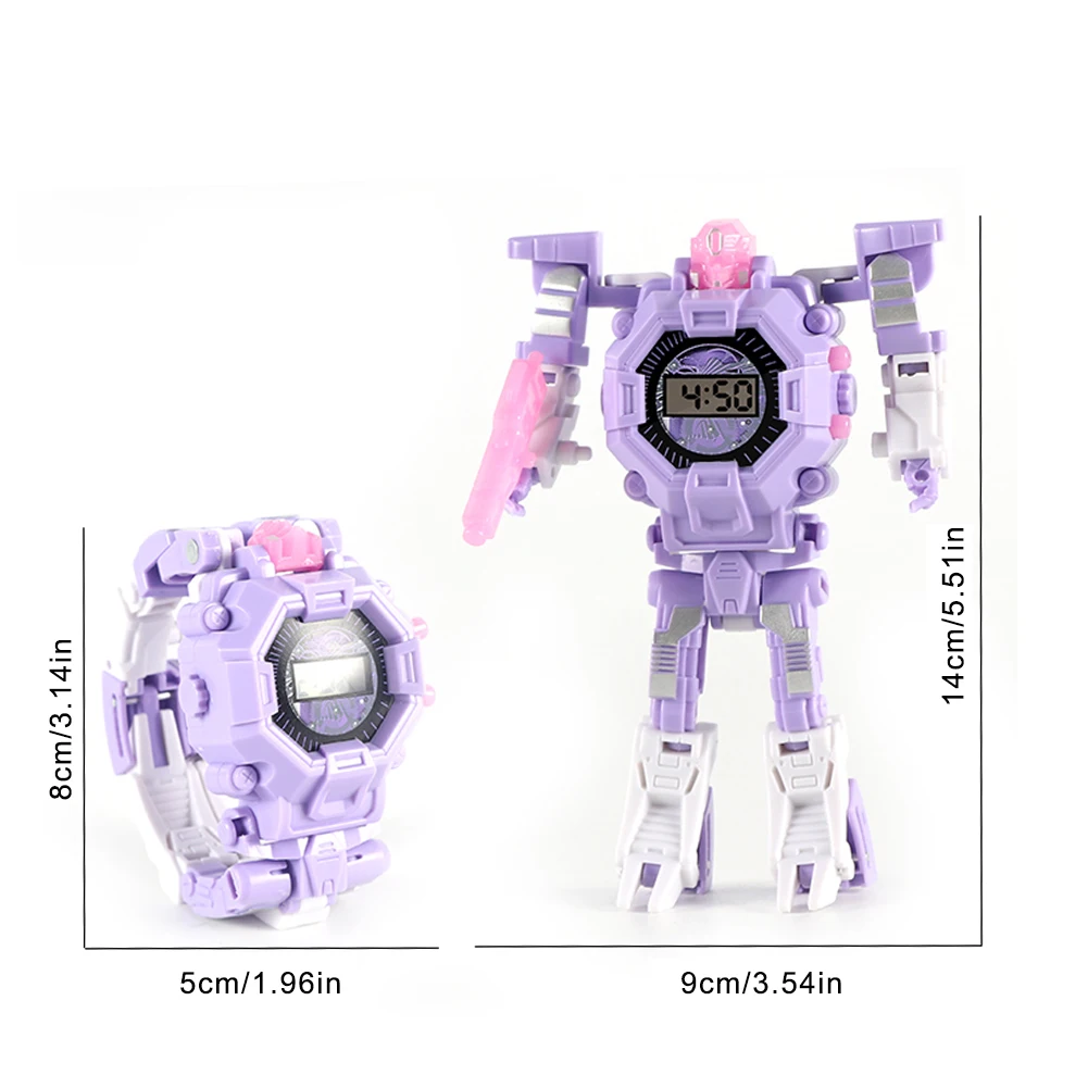 1. Это трансформационная Игрушка 2-в-1, которая сочетает в себе робота и часы. Эти роботизированные часы подходят для мальчиков и девочек старше 3 лет. Шарниры анаморфных часов-роботов могут поворачиваться на 180 °-360 °, что действительно является специальной игрушкой для мальчиков и девочек.