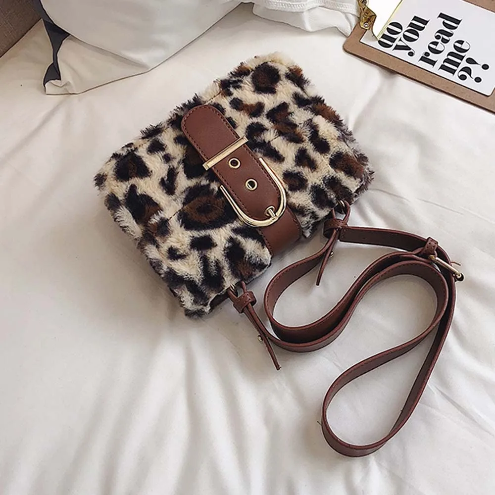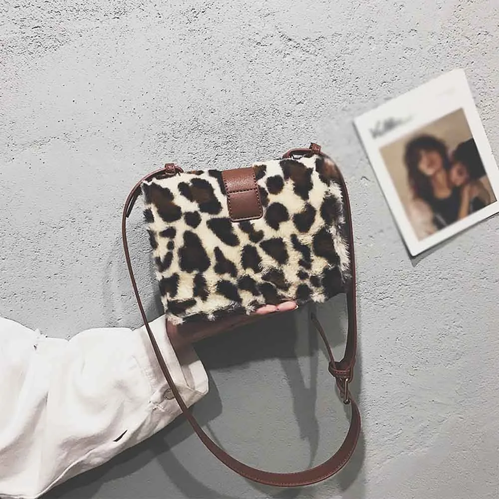 Модная женская леопардовая плюшевая мини квадратная сумка через плечо