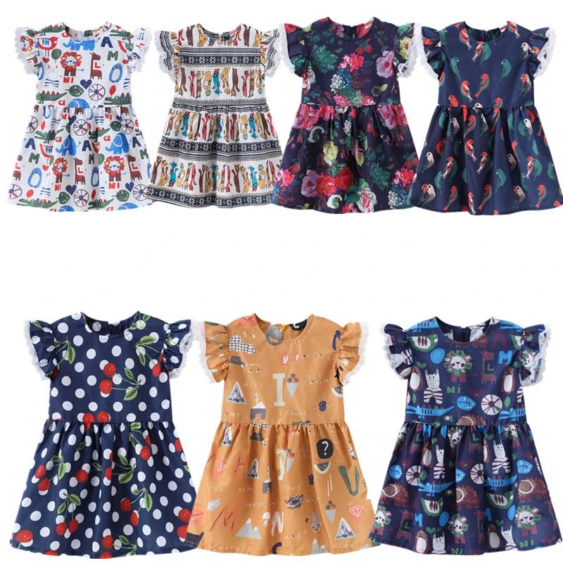 Новое летнее платье для девочек, милое кружевное платье с животным принтом, новогоднее платье, детская одежда, вечерние платья принцессы, платья