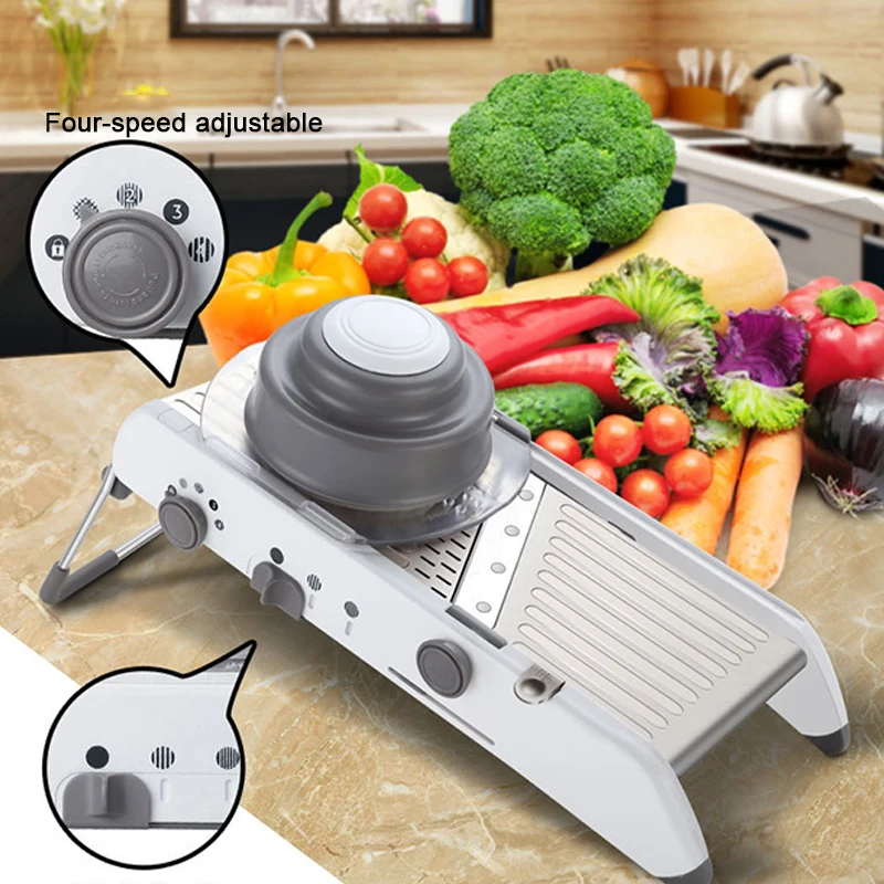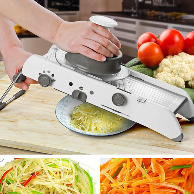 Основные Особенности: -Изготовлен из безопасного пищевого материала, экологически чистый, нетоксичный и безвкусный -Пищевая толкатель может повысить эффективность работы и предотвратить повреждения при резке -Многофункциональная ломтерезка мандолина может быть отрегулирована в 18 видах различных размеров ломтиков и кусочков -Идеально подходит для огурцов, моркови, имбиря, чеснока, лука, картофеля, лимонов и т. д. Технические характеристики: Материал: АБС-пластик, нержавеющая сталь Вес продукта: 1,25 кг Посылка Размеры Размер упаковки (Д x Ш x В): 1,00x1,00x1,00 см/0,39x0,39x0,39 дюйм (ов) Посылка: 1 многофункциональная овощерезка, 1 руководство пользователя на английском языке