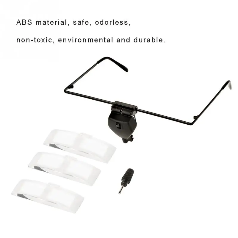 Материал безопасный, без запаха, нетоксичный, экологичный и прочный. 1.5x, 2.5x или 3.5x увеличенный вид отлично подходит для ремонта часов,Чтение книг или газет, рисование рукоделия, пошив и т. Д. Носимая лупа для очков обеспечивает свободное использование рук. Угол наклона объектива регулируется, что позволяет получить очень близкий вид. Светодиодный светильник позволяет работать даже в условиях тусклый светильник.