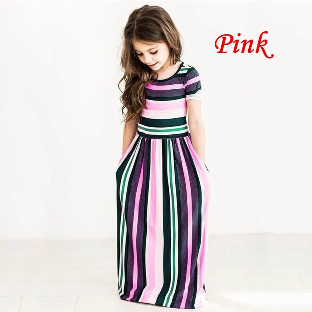 Для детей ясельного возраста, детские костюмы для маленьких девочек в полоску с надписью"dДлинное платье для детейЧастьyПляжная одеждаПлатьяOДля игр на свежем