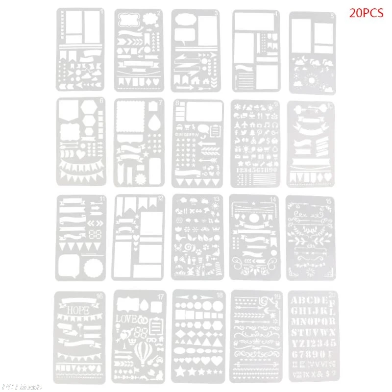 Изготовлен из пластика, трафарет прочный, устойчивый к ржавчине. Он немного мягкий и гибкий, поэтому вам лучше не нажимать на них, чтобы избежать сгибания. Размер полого дизайна достаточно велик, чтобы соответствовать стилю, цвету ручки, карандашу и т. д.
