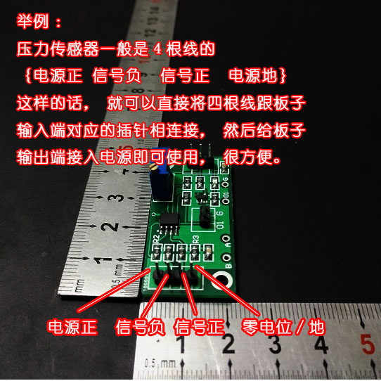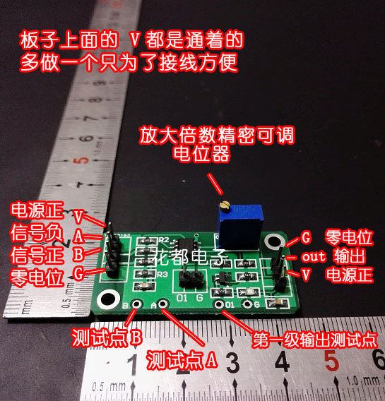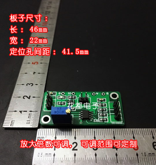 1. AD8572 является операционным усилителем ввода-вывода rail-to-rail, который может быть полнопарным выходом. То есть, с источником питания 5 В, максимальное выходное напряжение в основном равно 5 В, что облегчает получение системы 5 В и делает линейный диапазон намного больше, чем LM358.2. Несбалансированное напряжение AD8572 ниже, чем у нашего магазина (358, 602, 6482). Он может максимально эффективно усиливать сигнал уровня мВ, особенно датчик, Диапазон выходного напряжения которого мал (например, 358 недостаточно для 0-5 мВ).Модуль параметры:1. Источника питания напряжение: 3-5V DC (источника питания Диапазон напряжения составляет 3-5V при использовании должен обратить внимание на то, чтобы не должна превышать 5,5 V)2. Входной сигнал: аналоговый сигнал введение переднего датчикаЭтот модуль подходит только для датчиков с четырьмя проводами, а выход датчика сбалансирован, нет разницы нулевой регулировки или в отсутствии давления, разница в давлении между двумя сигнальными линиями почти равна нулю. Например, датчик взвешивает или сигнальные линии манометра представляют собой два плюс источника питания и в общей сложности четыре провода, тогда он может быть непосредственно подключен к входному терминалу, если это другая передача. Датчики, с этим модулем, должны построить свою собственную цепь полумоста для достижения баланса, наш магазин не предоставляет техническую поддержку в этой области, или вы можете напрямую купить магазин с нулевым модулем.Датчики с четырьмя проводами. Один-это V платы подключения питания, другой-G платы подключения с нулевым потенциалом, другой-положительный сигнал, а другой-отрицательный сигнал. Пожалуйста, подключите положительный контакт выходного сигнала датчика к INB и отрицательному контакту сигнала к INA.3. Выходной сигнал:(1) аналоговый выход 01: выходной сигнал является линейным результатом после дифференциального и первого этапа усиления (коэффициент усиления регулируется в соответствии с вашими требованиями), который изменяется с изменением переднего сигнала. Первый заказ несколько примерно в 10 раз фиксируется несколько, которые могут быть отрегулированы во втором заказе. Общее количество равно первому заказу и второму заказу.(2) общий выход 02: после усиления сигнала на первом этапе он переходит на второй этап и усиливает снова. Таким образом, выходной сигнал напряжения общего выходного терминала является продуктом многократного усиления первого этапа и второго этапа.Таким образом, мы можем усилить сигнал уровня милливольт или даже слабее. Общий коэффициент усиления-это продукт двухуровневого мультипликатора, поэтому коэффициент усиления будет в значительной степени скорректирован.(Если первый этап увеличен в 10 раз, то если второй этап регулируется до 100 раз, общее увеличение составляет 1000 раз.)Пластина параметры:1. Напряжение источника питания: 3-5 в постоянного тока2. Ток на выходе: максимум 15-20 мА3. Мультипликатор усиления: общий мультипликатор = первый мультипликатор * Второй мультипликатор4. Отправка по умолчанию: 10-1000 раз регулируется (если не указано)