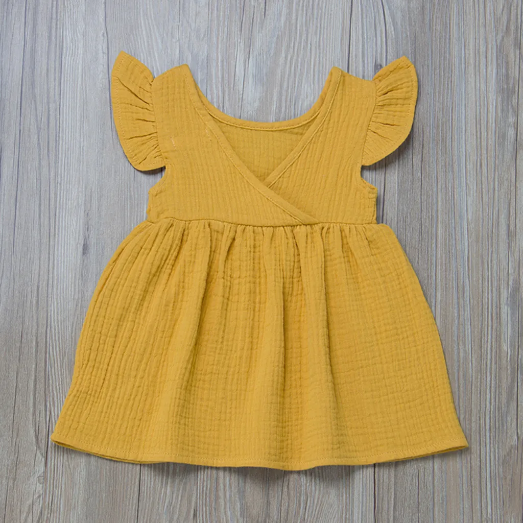 Летнее однотонное платье с рукавами-крылышками для маленьких девочек; Платья