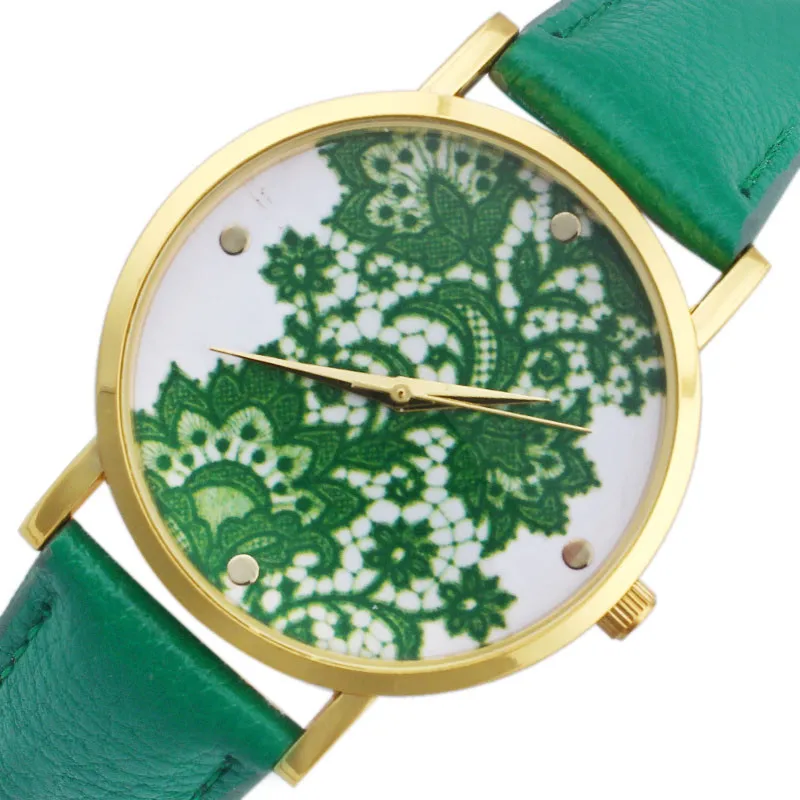 Женские Кварцевые аналоговые наручные часы с круглым кружевным принтом из искусственной кожи