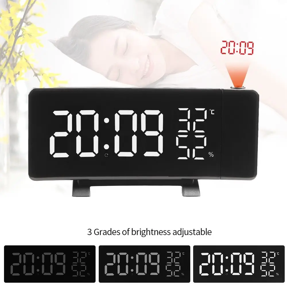 Проекция времени HD: регулируемый проектор на 180 ° позволяет проецировать ультра-ясное время на потолок или стену, позволяя вам видеть время даже когда вы лежите в кровати. С 2 уровнями яркости, регулируемыми.