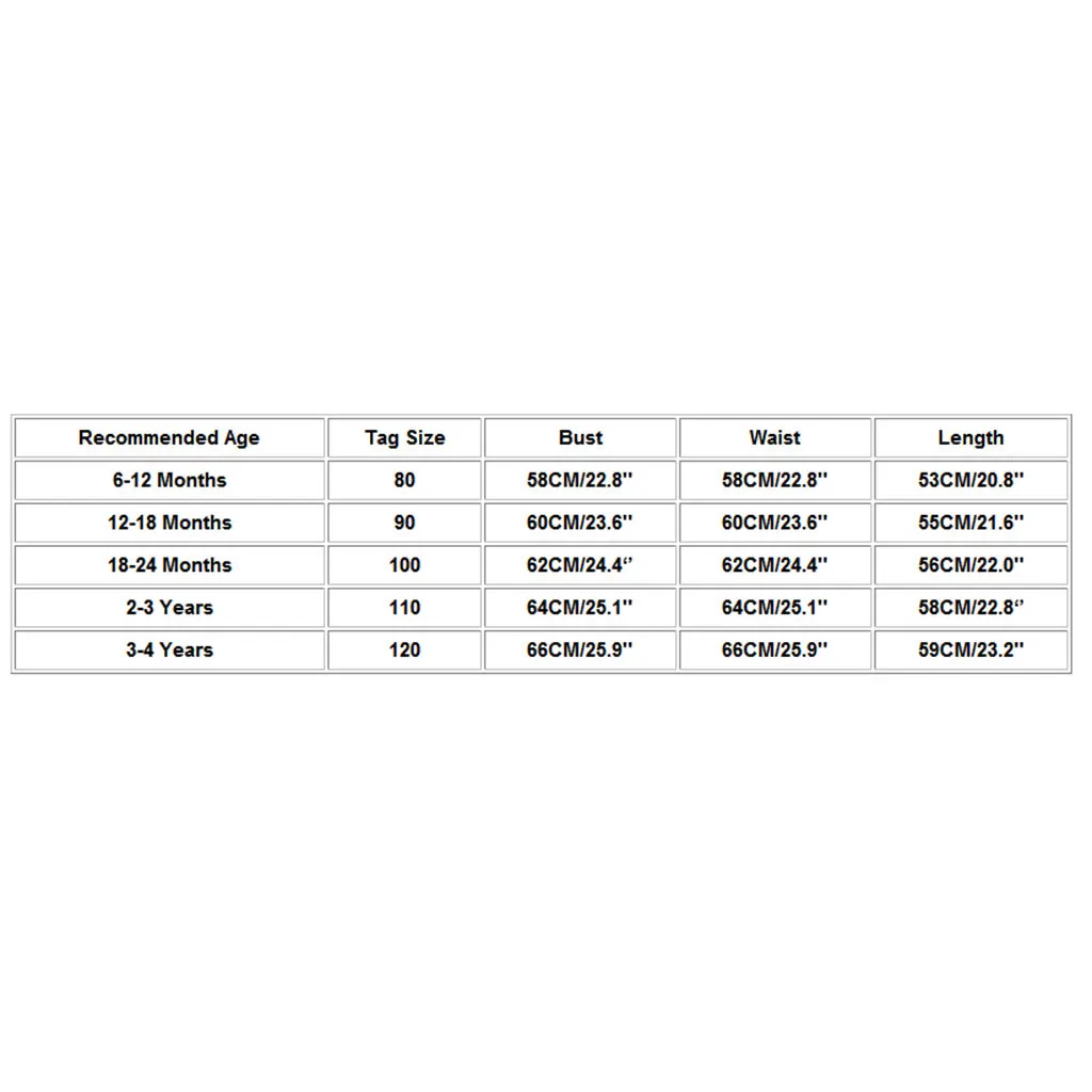 Рекомендуемый возрастТег РазмерыОбхват грудиОбхват талииДлина6-12 месяцев8058 см/22,8''58 см/22,8''53 см/20,8''
