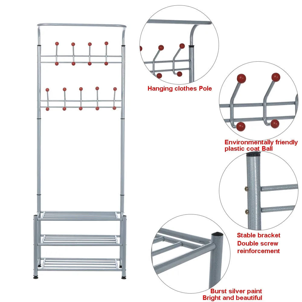 Металл Вход пальто полка для обуви 3-х уровневая обуви Скамья с пальто шляпа зонтик стеллаж для выставки товаров