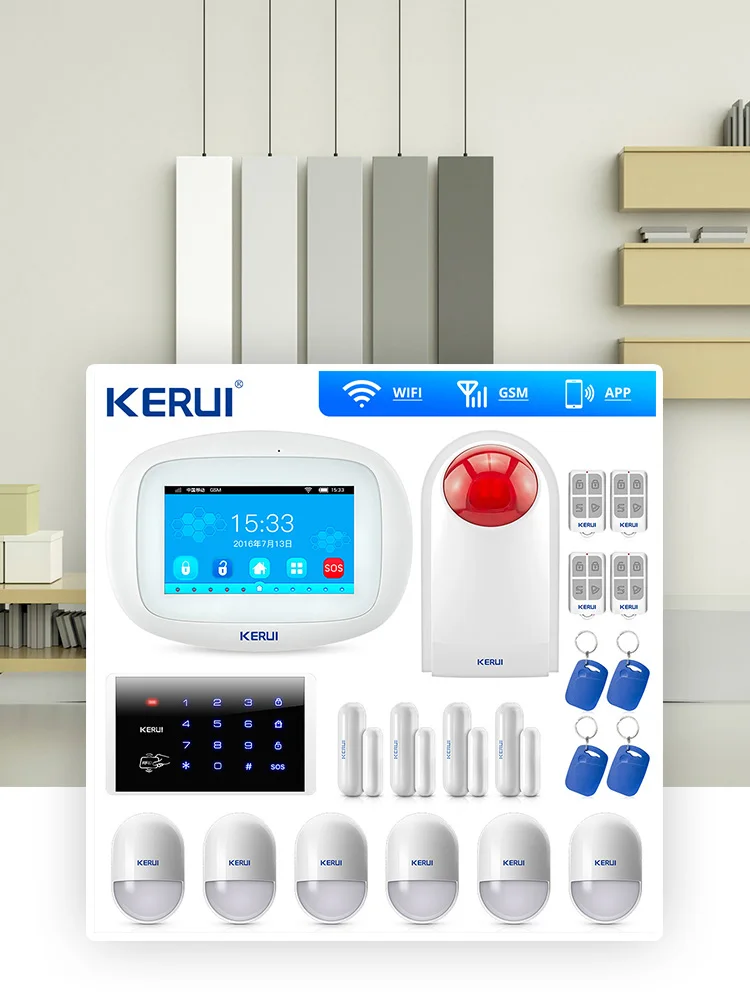 KERUI 4,3 дюймов TFT Цвет Экран Беспроводной охранной сигнализации WI-FI GSM сигнализация Системы приложение Управление клавиатуры WI-FI Камера Солнечной Сирена