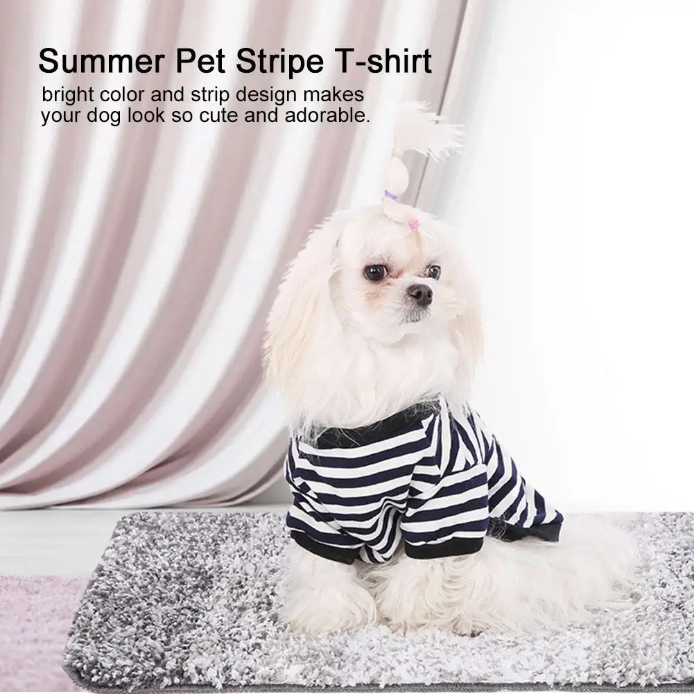 Изготовлен из хлопка, очень мягкий, очень хорошая вентиляция, удобно носить. Яркий цвет и дизайн в полоску делают вашу собаку такой милой и очаровательной. Подходит для домашних собак, чтобы носить их, даря любимому питомцу прекрасный опыт ношения. Футболка из мягкой ткани подарит вашему питомцу ощущение прохлады даже в жаркое лето. Дышащие Рубашки для собак отличаются высокой эластичностью и очень хорошо сделаны, не затягивают собаку, хорошо держатся после стирки и сушки.