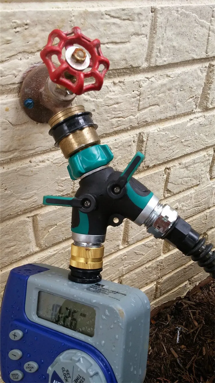 Название продукта: 3/4 ''садовый водный соединитель 1, материал: пластик, цинковый сплав 2, пластиковый корпус, TPR двойная Инкапсуляция. 3. Алюминиевый медный вход. 4. Наружные зубцы из цинкового сплава для воды, гальваническая обработка. 5. Вес изделия: 180 г. 6, Размер: 94*91*55 мм 7, пластиковый y-образный двухсторонний соединитель клапана. Добавьте 4 уплотнения и 2 соединения ниппель.