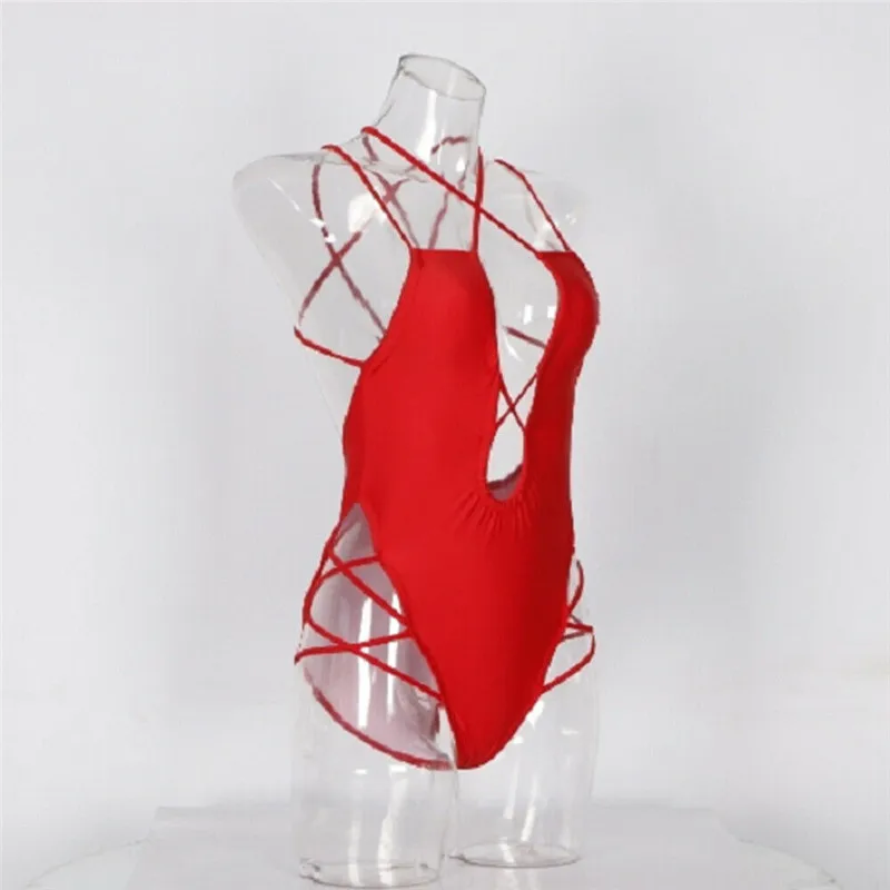 Женский купальник с глубоким v-образным вырезом, Одноцветный бандажный купальник, пляжная одежда, Бразильский бикини, купальный костюм, 2019