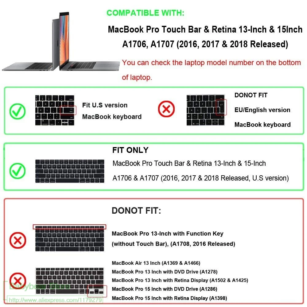 Русская версия для США чехол для клавиатуры силиконовый чехол для MacBook Pro 13 15 дюймов Сенсорная панель Номер модели A1706 A1989 A1707 A1990
