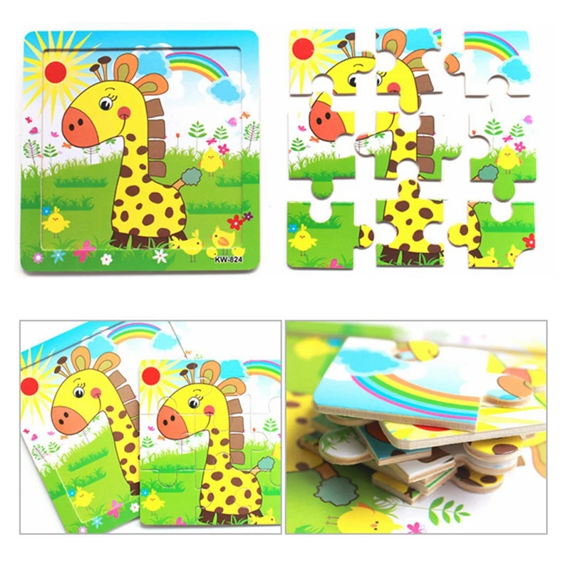 9 кусочков, маленькие деревянные игрушки, пазлы, милые животные, пазлы, 3D стереоскопический Развивающий пазл, игрушки для детей, Детские пазлы