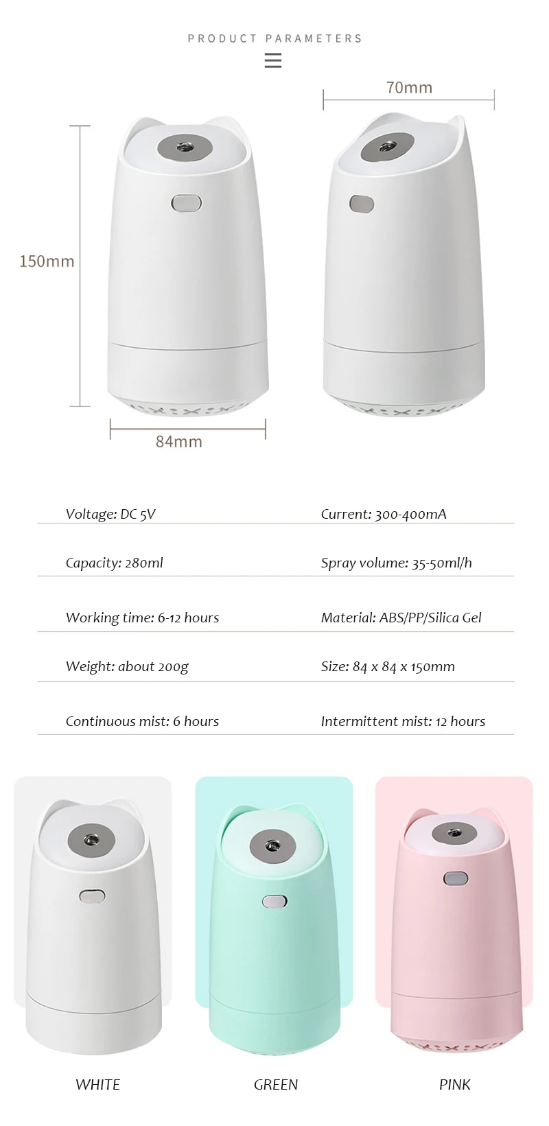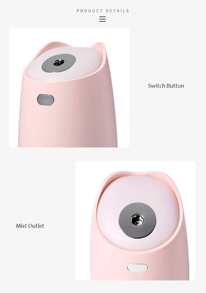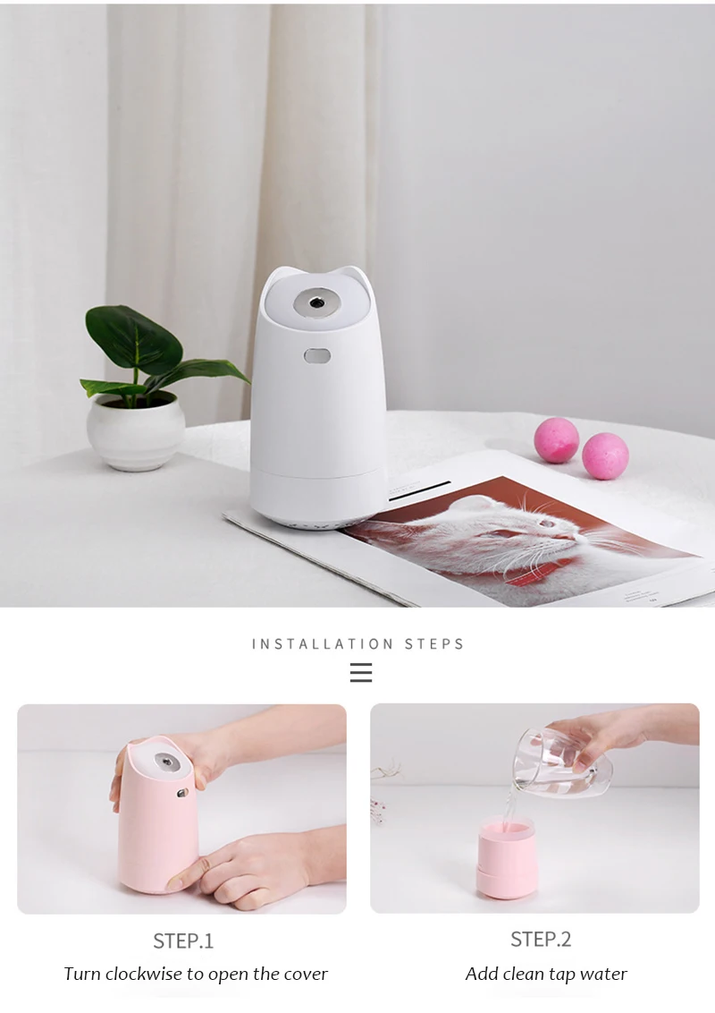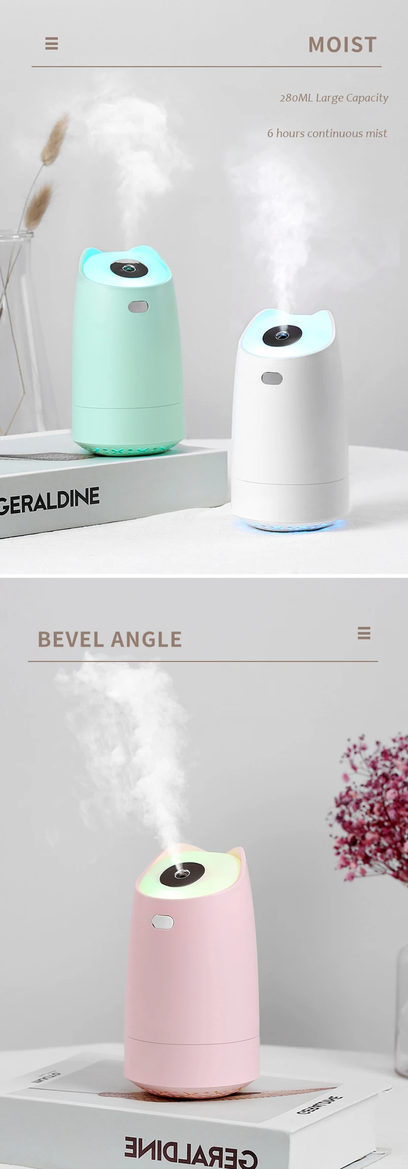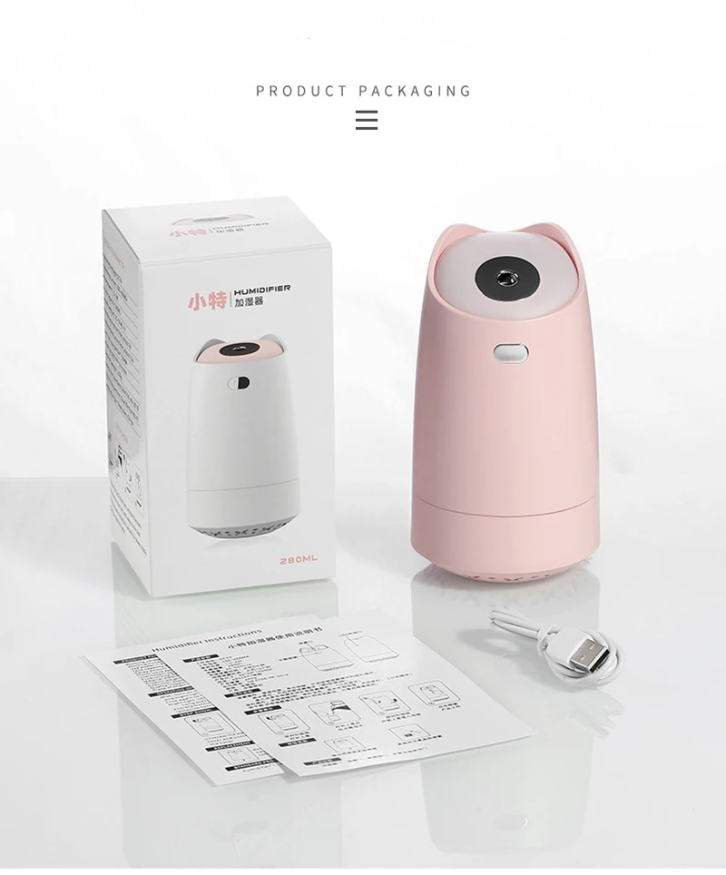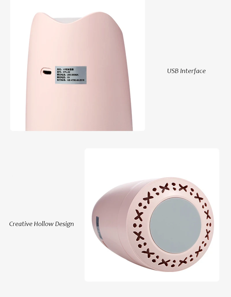 Легкий доступ с помощью usb-кабеля -Увлажняет воздух в помещении летом и зимой, освежает качество воздуха, которым мы дышим. -Очищает воздух, одновременно распределяя ваш любимый аромат в комнате, добавьте 3-4 капли эфирного масла. (Масло не входит в комплект)