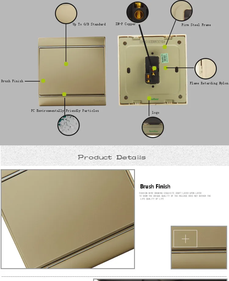 Главная 220 v 16A шампанское хромированный 1 gang 2 way кнопочный настенный выключатель