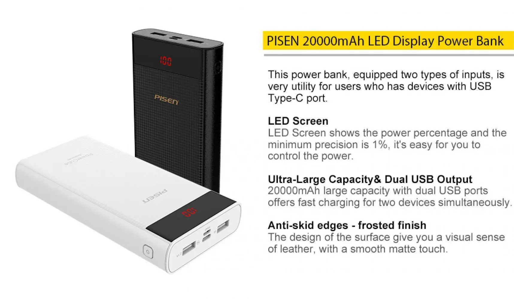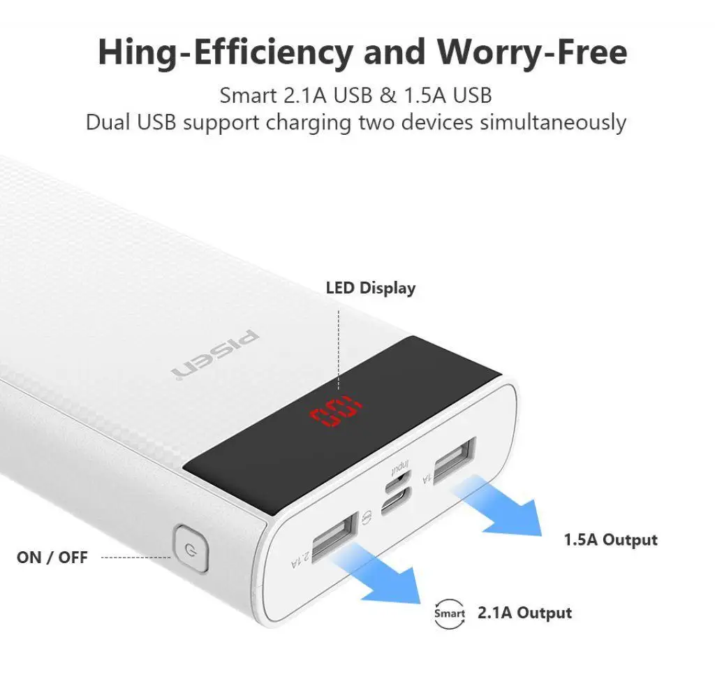 Производитель: Pisen Тип: Аварийный/портативный Выходной интерфейс: двойной USB Тип батареи: Другое Выход: 5 В/2 А Емкость аккумулятора: 20000 мАч Поддержка технологии быстрой зарядки: нет Сертификация качества: CE, FCC, CCC Входной интерфейс: usb type C, Micro USB Поддерживает солнечную энергию: нет Светодиодный светильник: нет Вес: 458 г Размеры: 156,87924,9 мм Цвет: черный/белый Модель: TS-D221 USB 1: 1.5A USB 2: 2.1A
