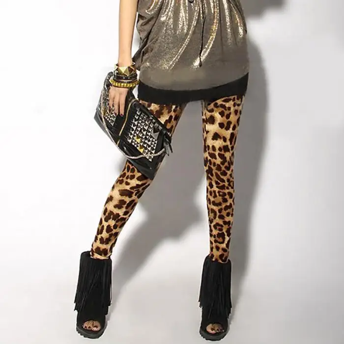 Тип одежды: весенне-осенние женские сексуальные леггинсы с леопардовым принтом, Стрейчевые хлопковые узкие брюки для девушек