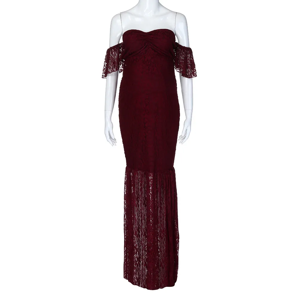 Женское сексуальное длинное кружевное платье для беременных с открытыми плечами