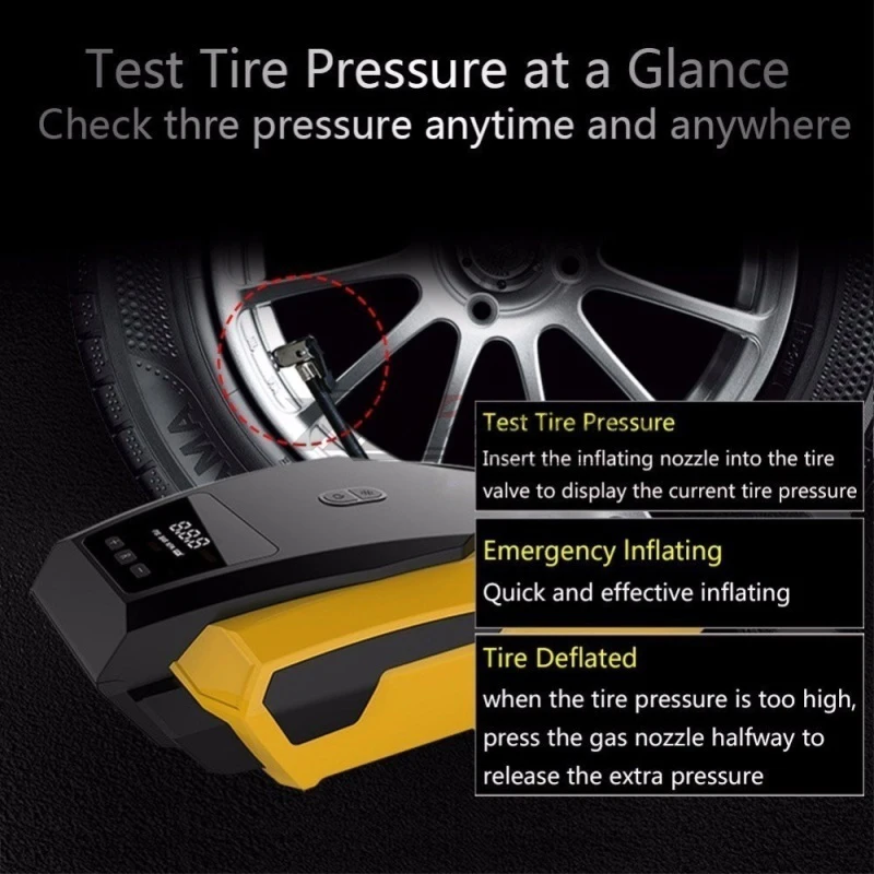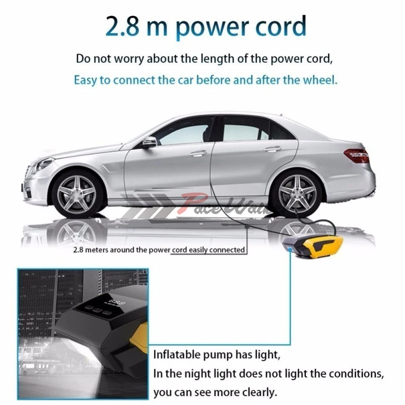 Электрический цифровой дисплей, воздушный насос для мотоцикла, автомобильных шин, Электрический насос, компрессор, 22 цилиндра, обнаружение шин, быстрая инфляция Особенности: 1. Аварийный светильник. Решить проблемы в темноте в чрезвычайных ситуациях.