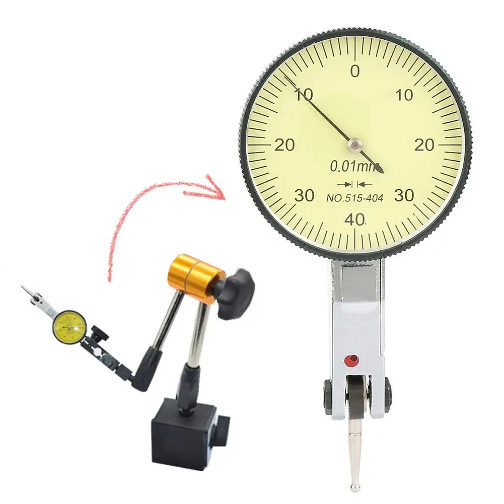 Точное и удобное измерение узких или вогнутых объектов. 0-0,8 мм Диапазон измерения, 0,01 мм градации, 0-40-0 балансный дюйм. Измерительный зонд может быть 180°Вращение, свободно регулировать направление измерения. Крепление ласточкин хвост для крепления индикатора сверху, сзади или спереди. Поверните накатанный ободок на 360 градусов, чтобы сделать нулевое считывание в любом положении. Широко используется в механических измерениях колебаний, измерениях заготовки и коррекции плоскости.